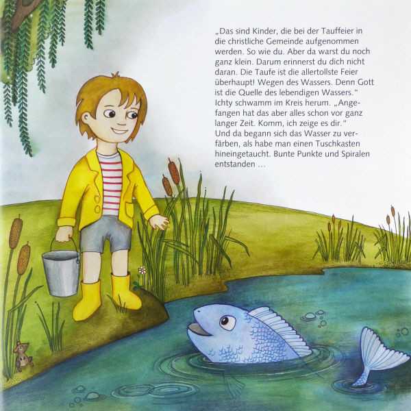 Als zentrale christliche Symbole bilden „Wasser“ und „Fisch“ den roten Faden der Erzählungen. Der Fisch Ichty nimmt das Kind mit auf eine Reise durch die Welt der Bibel. Gemeinsam sehen sie bei der Erschaffung der Welt zu, begleiten Noah, Moses und Jona bei ihren Erlebnissen und begegnen Jesus erstmals bei dessen Taufe durch Johannes.