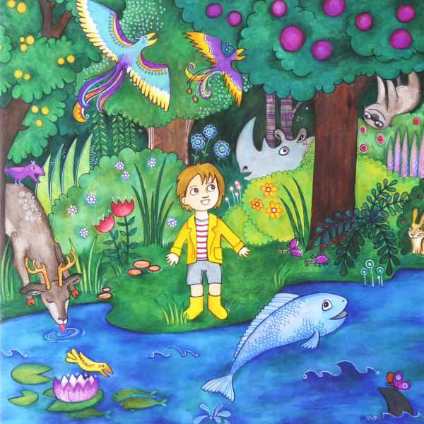 "Hallo, Maxi", rief plötzlich eine kleine, blubbernde Stimme. Das Wasser kräuselte sich und er staunte nicht schlecht, als zwischen den Seerosenblättern das freundlich lächelnde Gesicht eines blauen Fisches auftauchte.