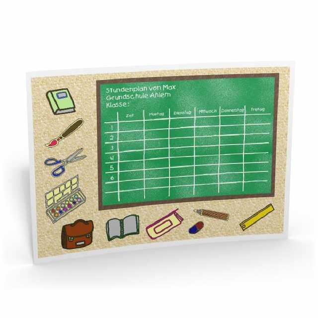 Ihr Kind bekommt einen ganz persönlichen Stundenplan mit seinem Namen und dem Namen der Schule. Damit Sie auch lange etwas von dem Stundenplan haben, wird dieser laminiert und mit einem Folienschreiber geliefert. Der Folienschreiber kann mit Wasser für die nächste Klasse entfernt werden. Diese Stundenpläne bekommen Sie nur hier!